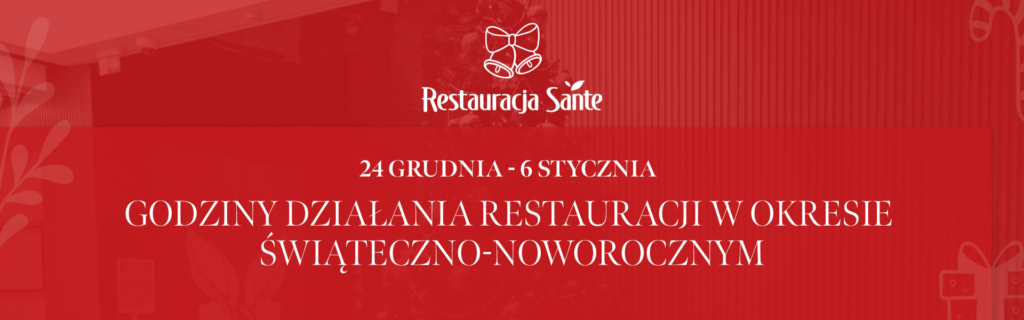 Zachęcamy do zaplanowania wizyty w Restauracji Sante podczas świąt i na przełomie roku.